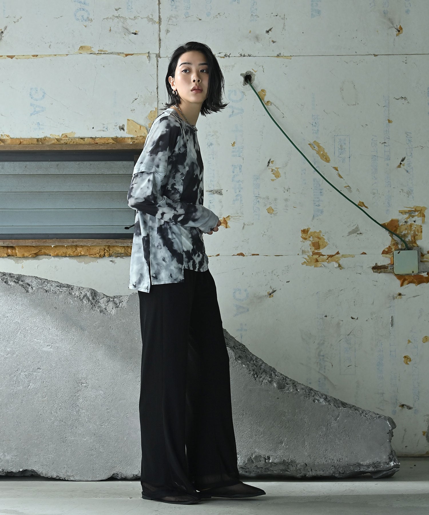 長めの着丈とゆったりとしたシルエットが