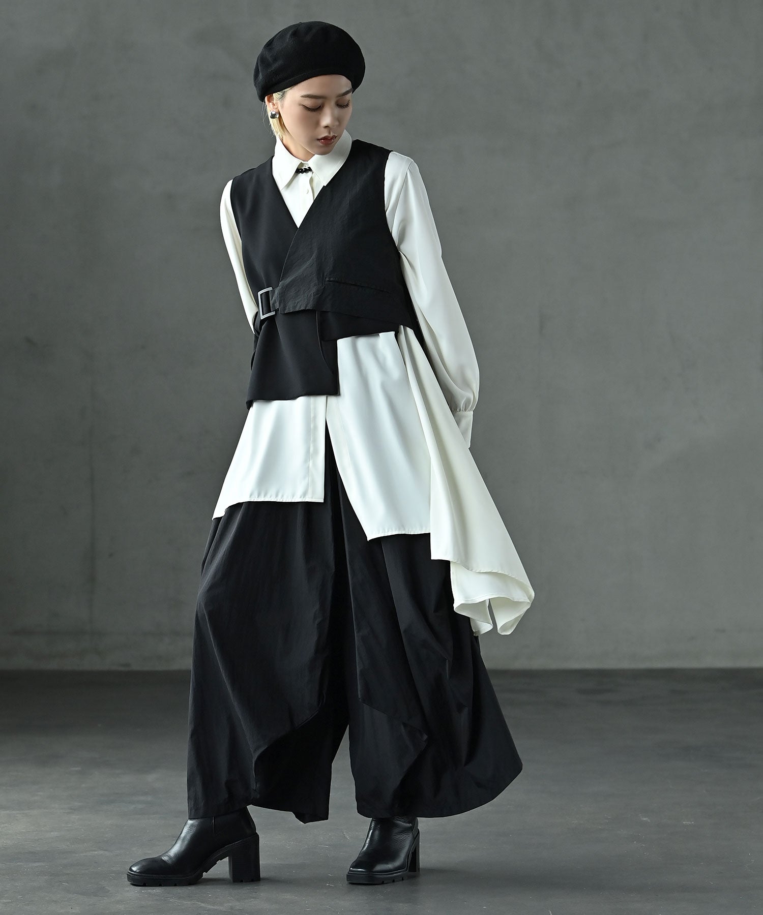 スカート見えのデザインパンツ。